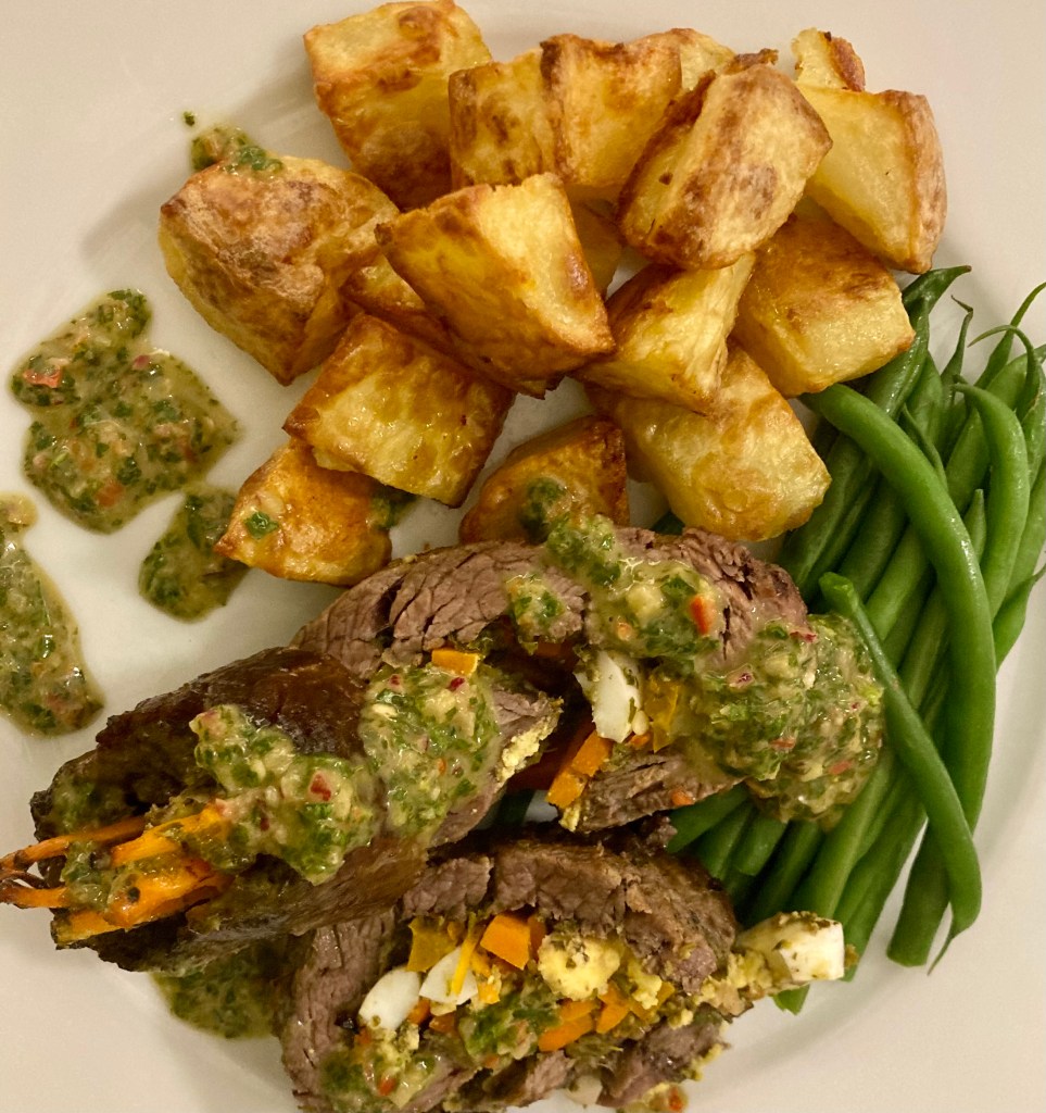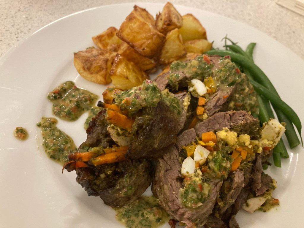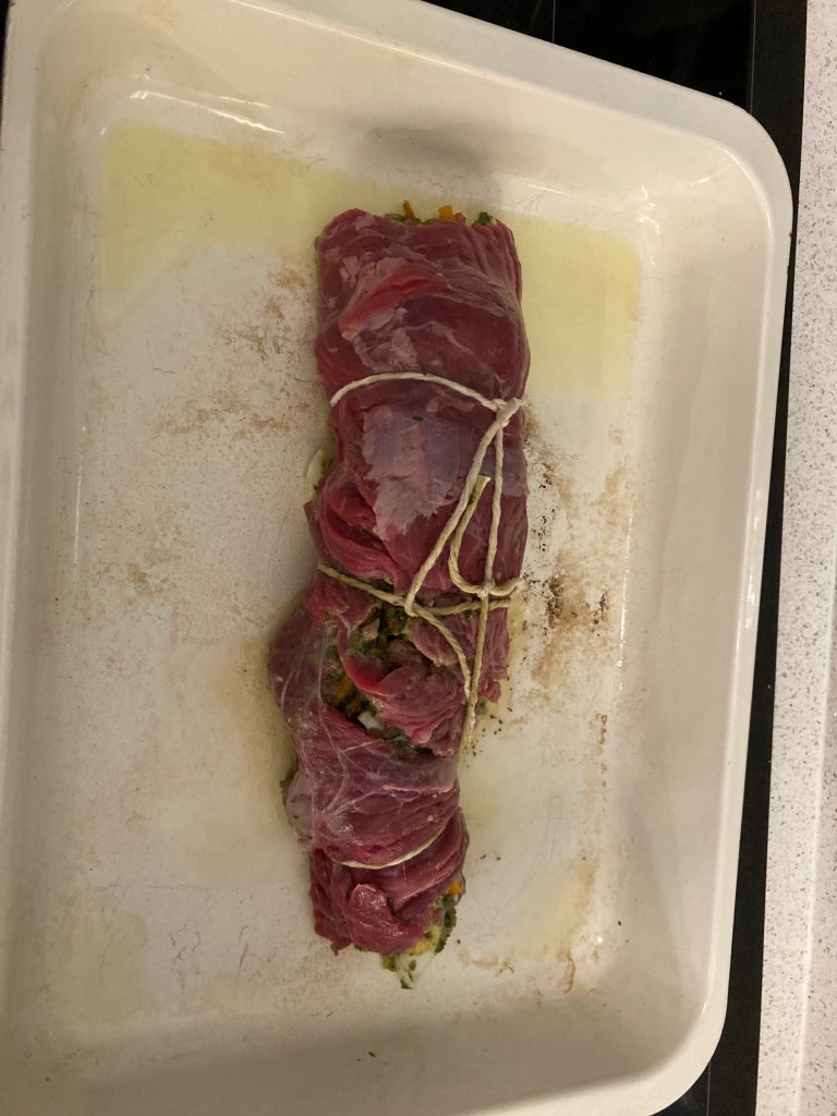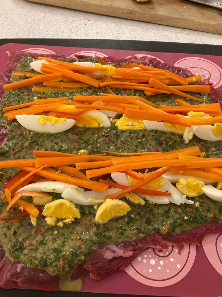 Let’s be honest, the only thing I knew about Argentinian food before I started to research it was chimichurri sauce (amazing) and steak. A bit of research and I settled upon a variation on steak and sauce. The matambre. This is a rolled, stuffed flank steak which sounded delicious. The recipe I broadly followed is one from Jo Cooks but a few things I did differently: