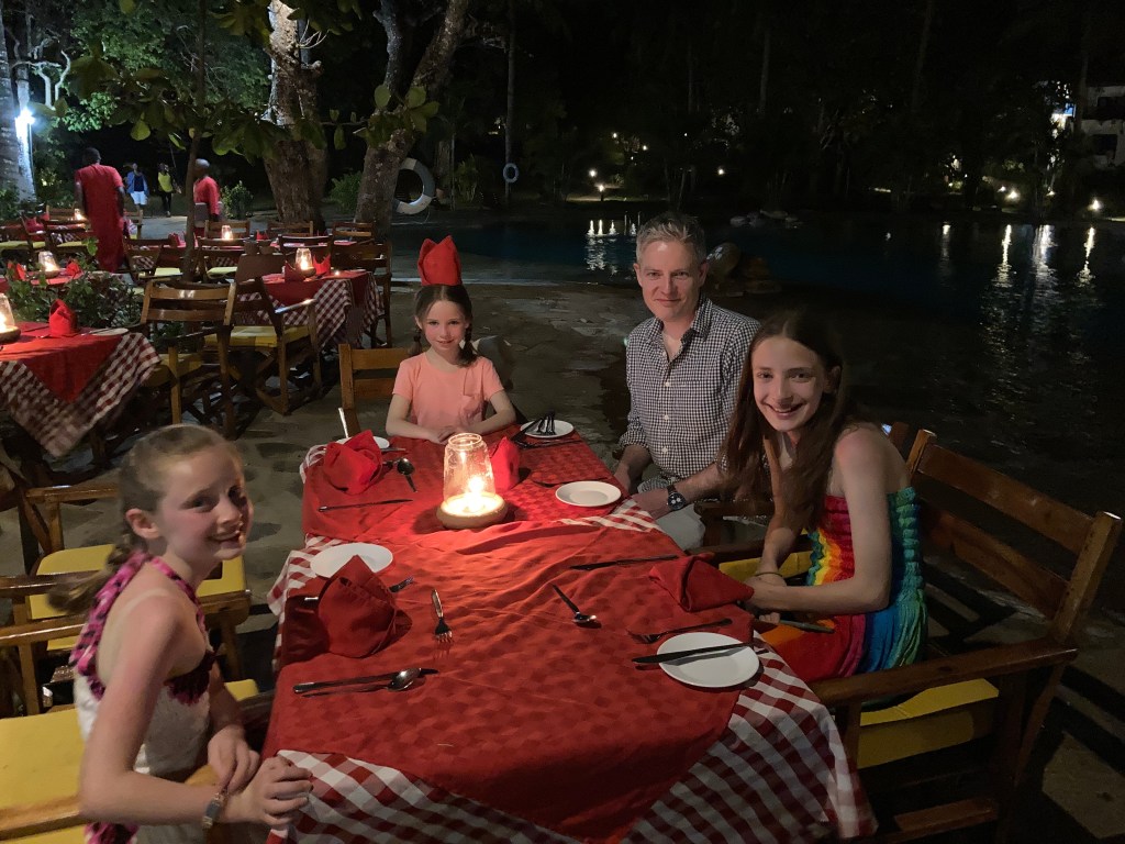 When we were in Kenya, our lovely friends introduced us to the wonder that is Swahili fish curry. This is a coastal dish and I found a great recipe from pan-African and copied it pretty much exactly although I used basa fillets instead of red snapper. I’ve not been a fan of basa but they worked so well in this dish. I took left overs to work the next day for lunch and our holiday nanny sent me a message to say how much she enjoyed it. All three kids ate it and so a triumph all round. If you merge the pics below, this is us eating Swahili fish curry in Diani beach.