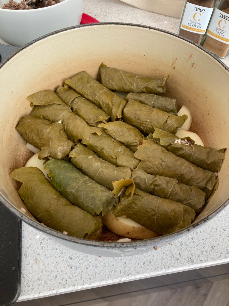Stuffed vine leaves are delicious. I love them and so Lebanon presented an excellent opportunity to stuff some leaves! In Lebanon they are called warak enab. Also, we have a grape vine. This has leaves. This was all good news. Research led me to this recipe from feel good foodie and I lovingly followed it step by step. In case you don’t believe me, I managed to video myself rolling and stuffing the leaves. My video skills are crap. I did film it again but the angle of the second attempt only serve to highlight a new muffin top that is unflattering and does not need sharing.