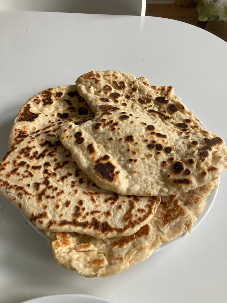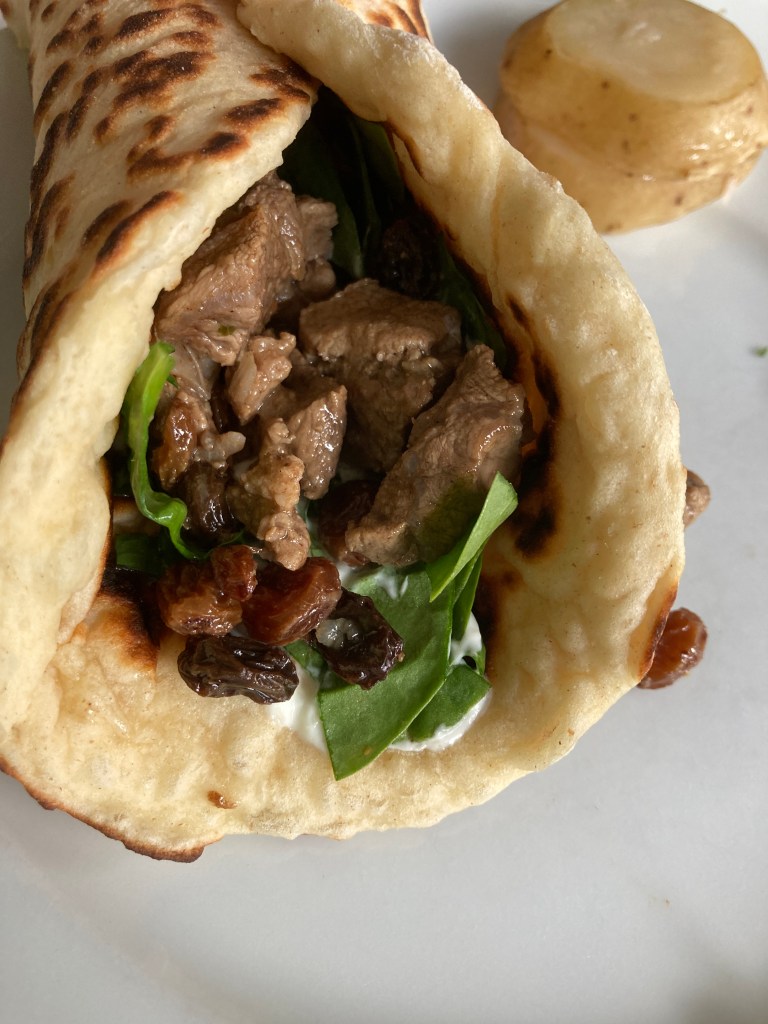 I had honestly meant to stop there and had taken out some lamb steaks which I was going to just cook and have alongside the warak enab but a free afternoon, a bit of internettery and ambition led me to rethink and also add lamb flatbreads and garlic yoghurt sauce into the mix! I loved making flatbread but didn’t use lamb mince in the recipe as I chopped up the steak small and used that instead. It was absolutely awesome and the girls loved it all. As did COD. I won’t lie, the warak enab lacked flavour and we ate a few each but the rest sadly died a death in a left over container in the fridge over the course of the following week. Perhaps these also need to be added to the list of ‘stuff we go out to eat for’.