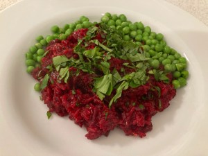 We get a fair bit of beetroot from our local veg delivery company, Living Larder, which is great because it is absolutely food of the Gods. I’ve even managed to get the girls to eat it in risotto. It is also the most incredible colour. I don’t have a recipe to direct you to but I generally use Jamie Oliver’s risotto recipe and adapt to the ingredients at hand. We make vegetable risotto about once a week these days as I can get the kids to eat all sorts of veg in it. I also don’t actually use celery but generally use leek instead. So, beetroot risotto, I grated fresh, peeled beetroot and added it with the onion, garlic and leek at the beginning so it cooked as I cooked the rice into the dish. I had meant to buy feta to crumble on the top but forgot but it was perfect with tonnes of parsley and some fresh green peas!