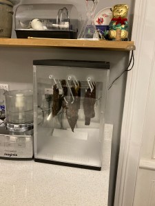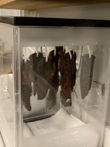 This was an excellent Christmas gift for COD. A biltong maker (essentially a dehydrator) and a trip to the local butcher and yet more legal school snacks appeared! I have now made two lots of biltong using the Greedy Ferret’s perfect biltong recipe. I used ground coriander the first time and then coriander seeds and some dried chilli second time around. Coriander seeds are better and less chill flakes for the third time and we like our biltong really dry so at least 7 days drying but probably more like 10.