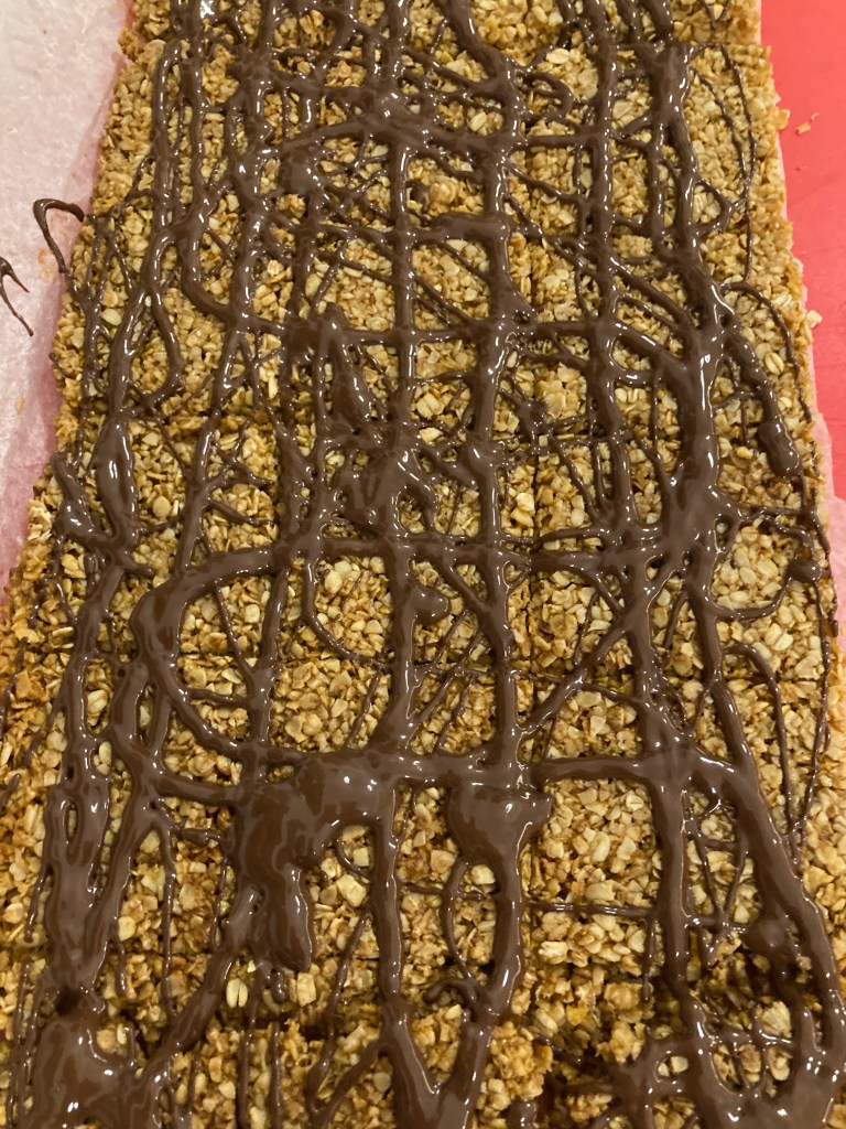 My kids love Nature Valley Dippers. They are legal school snacks but I get annoyed at the price tag. £3 for 8 packs of 2 small biscuits and all the plastic packaging they come in. So during half term, I set out to see if I can make them. Can’t be hard – basic flapjack recipe (crunchies for the South African’s reading this), dipped in milk chocolate. Imagine my utter delight when I found a recipe online claiming to be the one and only Nature Valley recipe! Betty Crocker has given me a fantastic recipe for making these oat and honey bars.