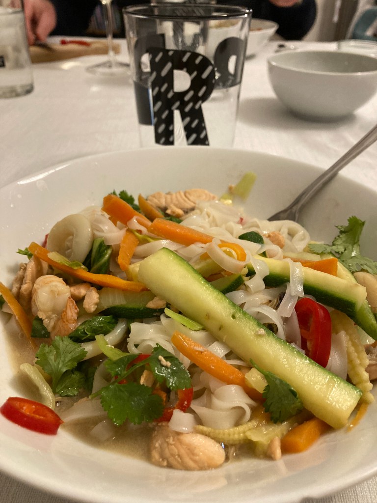 After weeks of fairly heavy eating, I wanteed to get some nutrients and veg into the kids the nightb before school went back. We all love a pho and we all love Wagamama so a perusal through Wagamama’s ‘Your Way’ led me to this recipe. As usual, I adapted it to suit our veg preferences (and what was in the fridge) and apart from using almost every bowl in the kitchen and creating more washing up than was initially anticiapted, it was delicious and everyone ate it (mostly). It’s light, fresh and super tasty. Annoyingly it isn’t online so I shall have to type it out. I’ll adapt it to include how I made it.